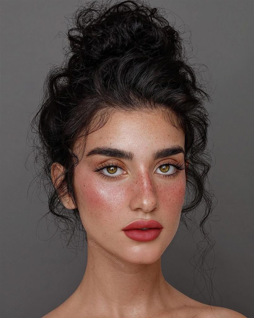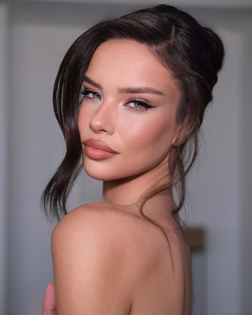 Lips and cheeks are enhanced with soft tones that complement the natural flush of warm skin. This goddess-inspired look is ideal for elegant evening gatherings, from candlelit weddings to upscale beachside parties. It’s proof that natural makeup doesn’t need to be muted—it can shine just as brightly as the stars.