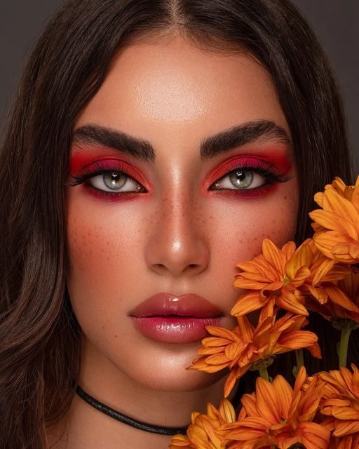Channel the vibrancy of blooming summer gardens with a palette of orange and red. Especially flattering for green eyes, this nature-inspired look is bold yet wearable when paired with neutral lips. It’s a stunning way to express summer’s bright beauty.