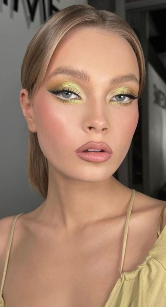 Add a burst of citrus to your look with lemon-yellow eyeshadow that evokes sunny days and fresh energy. This vibrant shade brightens the entire face while remaining wearable thanks to soft winged liner and natural lashes. It’s perfect for makeup lovers who want a cheerful, colorful twist on the natural eye trend.