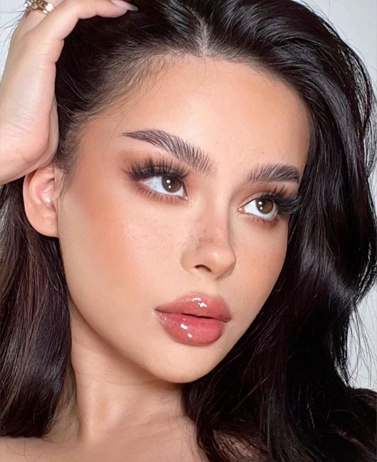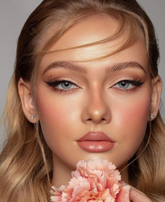 Warm neutral tones and long lashes bring out your natural eye depth, while a rosy pout gives a romantic flair. This look is understated and graceful, ideal for daytime dates or garden parties where you want to keep it soft but unforgettable.