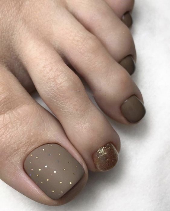 Neutral tones take the spotlight in this elegant taupe pedicure. Accented with subtle gold flecks, this look is quiet luxury at its finest. Versatile across skin tones—from pale to tan—it’s ideal for travelers and fashionistas who want a pedicure that pairs with everything from flowy vacation dresses to sleek jumpsuits.