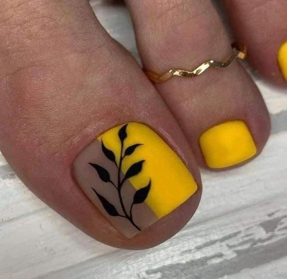 Bright neon yellow bursts to life with delicate black and white floral accents in this cheerful, citrusy design. This pedicure channels summer brightness and pairs beautifully with white outfits, colorful bikinis, or casual denim. A perfect choice for light skin, it’s like sunshine for your toes—bold, energetic, and full of zest.