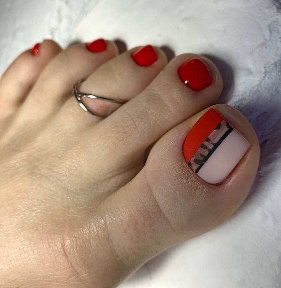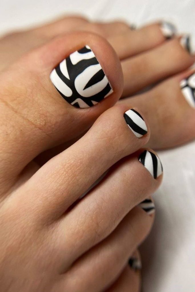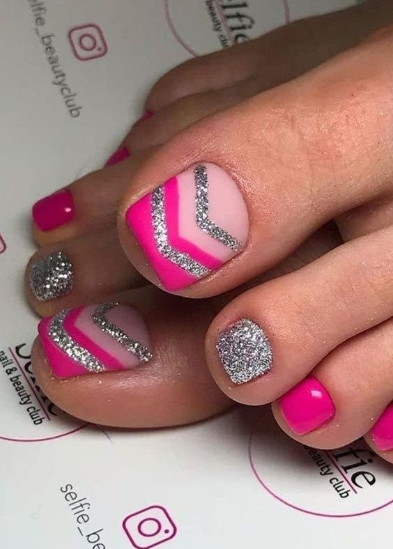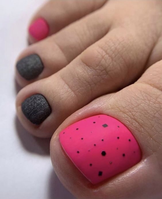 Hot pink isn’t just a color—it’s a mood. This striking pedicure features a bold pink base with sleek black tips, creating a strong visual statement. It’s trendy, confident, and ideal for brunch dates, beach hangouts, or anywhere you want to show off a bit of sass and fun. The high contrast ensures it stands out on any skin tone.