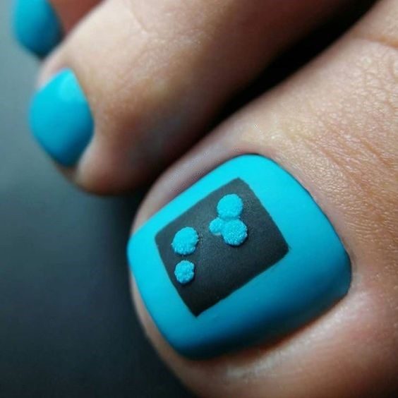 Geometric and refined, this teal blue pedicure accented with abstract patterns gives a nod to modern art and sophisticated edge. Bold without being overpowering, it complements dark skin tones beautifully and works just as well at a resort party as it does at an upscale dinner. It’s contemporary chic with a creative twist.