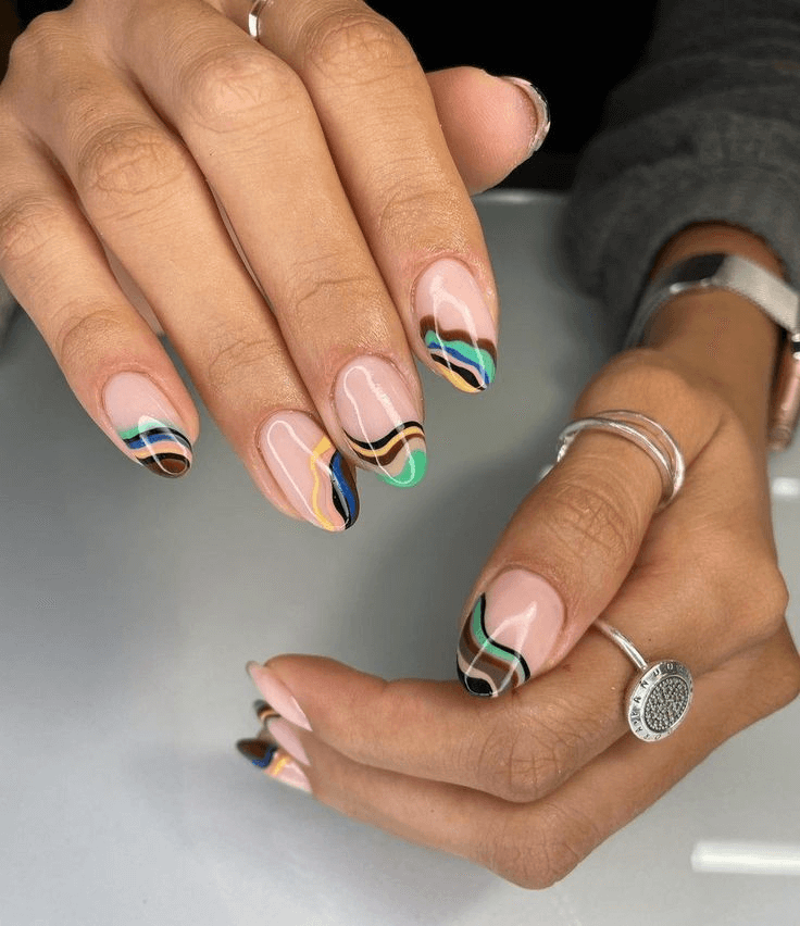 This design is a tribute to the artistic Capricorn. Long acrylic nails are transformed into canvases of color with fluid, abstract swirls set against a sheer base. It’s an avant-garde look for creative souls, ideal for events where style and originality matter—like gallery visits or upscale evenings out.