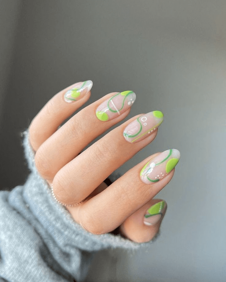 Minimal yet daring, this lime green lined design on short acrylics channels spring vibrancy with modern flair. It’s an excellent pick for fashion-forward Capricorns seeking an eye-catching yet clean manicure for their birthday festivities or spring fashion moments.