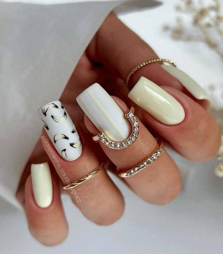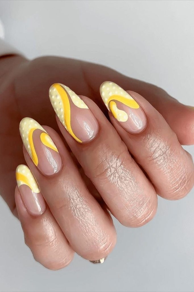 Capricorns drawn to cheerful hues will adore this yellow and white acrylic short nail set. The combination is playful and bright, exuding positivity with dotted, candy-like textures. It’s a joyful choice for a casual birthday brunch or spring get-together, perfect for celebrating life’s happy moments.