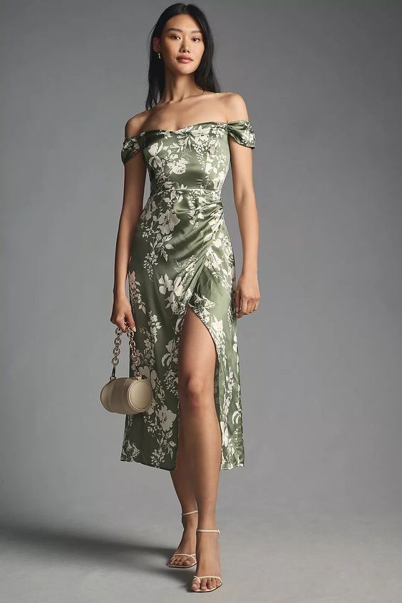 Fall weddings are the perfect excuse to wear warm, earthy colors. A midi dress in rust, olive, or deep maroon captures the season’s cozy elegance. Choose heavier fabrics like crepe or velvet and look for long sleeves or subtle wrap designs. Ankle boots and a tailored jacket keep you warm and stylish when the temperature dips.