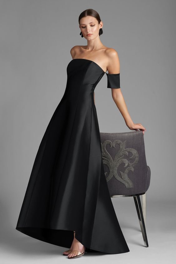 A long black dress never goes out of style. Opt for a timeless silhouette like a fitted column gown or a flowy A-line with a dramatic slit. Details like asymmetrical necklines or off-shoulder designs add modern flair. Keep accessories simple — a pair of drop earrings, a sleek clutch, and classic heels let your dress do the talking.