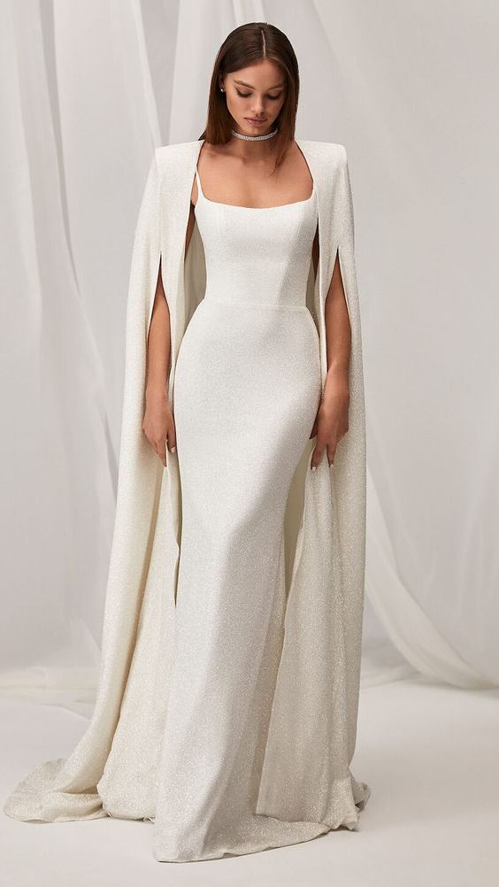 Winter weddings don’t have to be all about shimmer and drama. Minimalist designs with clean lines, high necks, or long sleeves feel elegant and chic. Go for muted tones like charcoal, deep green, or rich chocolate. Add subtle accessories and let your dress’s simple sophistication speak for itself.
