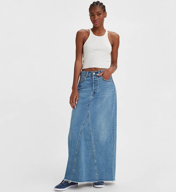 Classic denim gets a modern makeover in this long jean skirt with a thigh-high slit. A casual staple reimagined for 2025, this piece is ideal for city strolls, weekend markets, or casual lunches. Style it with a denim crop top for a coordinated look or contrast with a soft cotton tee for effortless appeal. The timeless charm of denim now comes with contemporary flair.