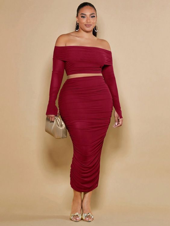 Rich earth tones bring sophistication to warm-weather fashion, and this burgundy-brown wrap skirt is no exception. A high slit introduces a touch of allure, while the matching crop top keeps the silhouette polished and modern. Whether styled with gold jewelry and strappy heels or kept relaxed with neutral flats, this outfit blends classic elegance with a sultry summer twist.