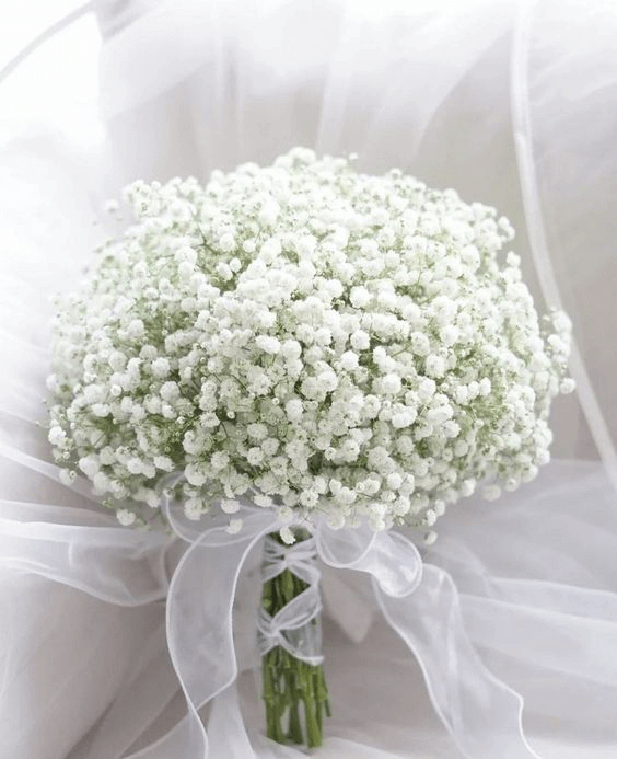 Ending with a whimsical touch, this bouquet of baby’s breath creates the illusion of a snowball made from clouds. It’s the ultimate minimalist bouquet, but its charm and texture give it presence. Whether carried alone or paired with bolder blooms, it adds a rustic yet ethereal vibe to spring wedding flower arrangements in 2025.