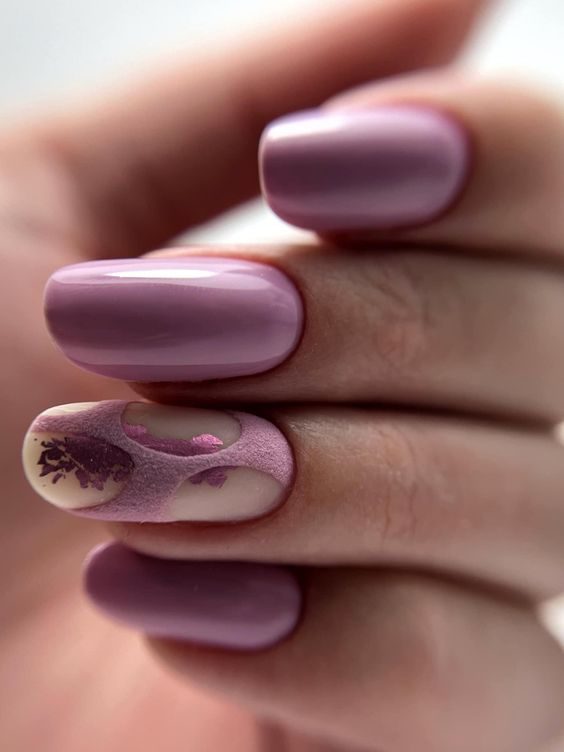 Capture the calming essence of lavender with this romantic design. Featuring lavender tones and marbled accent nails, along with subtle floral motifs, these oval nails evoke a peaceful summer escape. Pair with linen dresses or soft scarves for a graceful and effortlessly stylish look that channels the heart of the season.