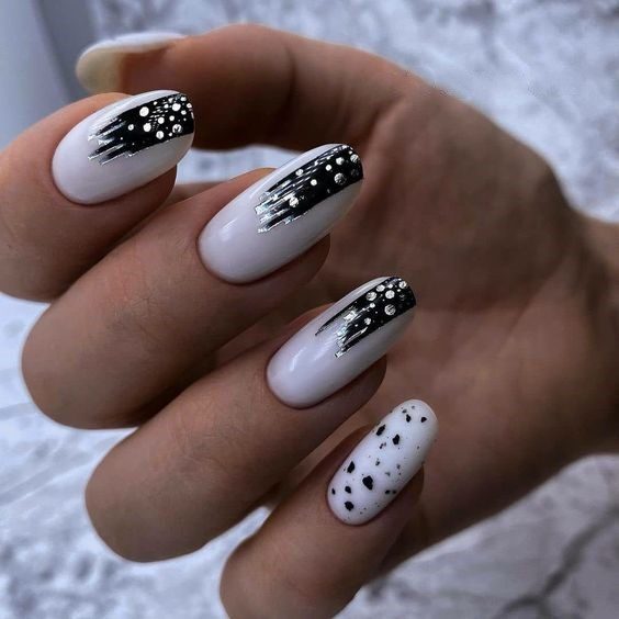 Black and white never go out of style. This modern take splashes the two together in a playful, splatter-style design, creating an artistic look that’s both edgy and timeless. These nails are versatile enough to pair with anything in your wardrobe, making them a go-to choice for every summer occasion.