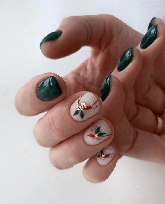 Styling Tip: These nails look stunning against a crisp white button-down and tailored green trousers. A structured blazer and gold earrings tie it all together for a festive yet office-appropriate look.