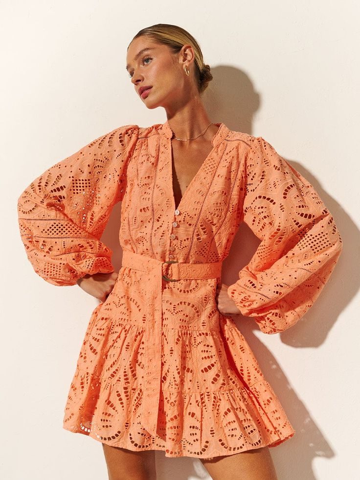 A coral eyelet dress is the answer to minimalist dressing with personality. With intricate textures and a soft, flattering silhouette, this dress stands out while remaining aligned with capsule color palettes. It’s an elegant nod to the French aesthetic, designed for vacations, weekend getaways, or casual soirées. This piece adds vibrance and polish to your capsule wardrobe without overwhelming your minimalist theme.