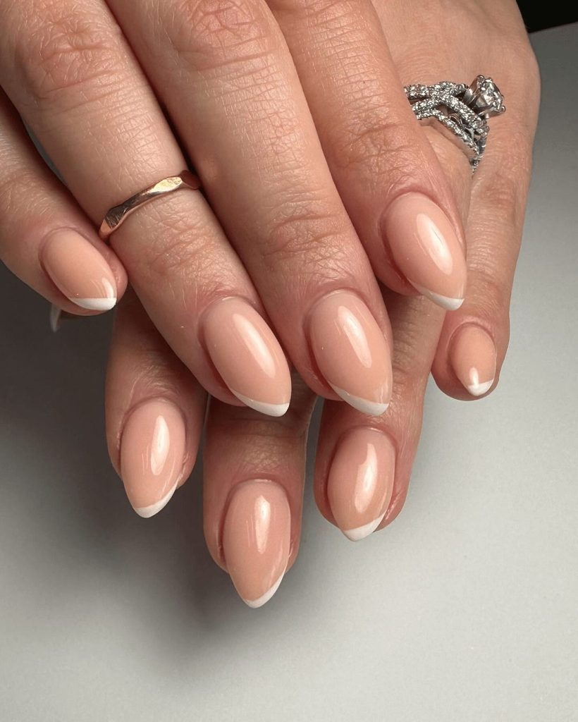 French manicures remain a favorite, but in 2025 they’re getting a fresh, modern update. This version uses a warm nude base with a crisp white tip on almond-shaped nails, creating a sleek and versatile look. It’s simple, sophisticated, and perfect for both casual days and formal occasions.