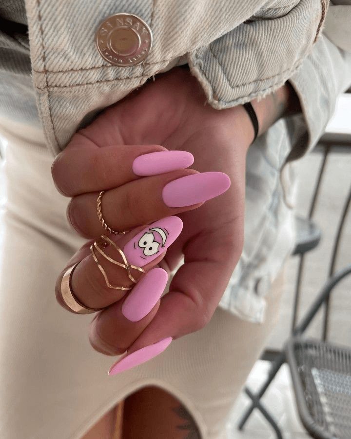 Dive into whimsical waters with this pink medium-length acrylic set, each nail telling a visual story. A cute illustrated character adds personality to the ensemble, perfect for imaginative Pisceans embracing their inner dreamer. Ideal for sweet 16 celebrations or simply expressing a youthful, everyday baddie vibe, this design captures the soft magic that defines this sign.