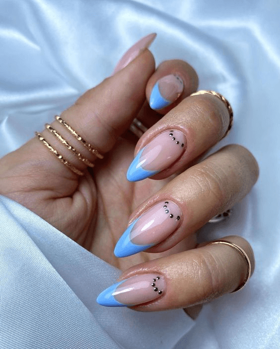 These airy blue almond nails feature delicate cloud patterns and subtle rainbow tones, capturing the cosmic energy of the Pisces zodiac sign. Dreamy and reflective, they’re perfect for casual spring outings, crystal-shopping days, or simply aligning your manicure with your spiritual path.