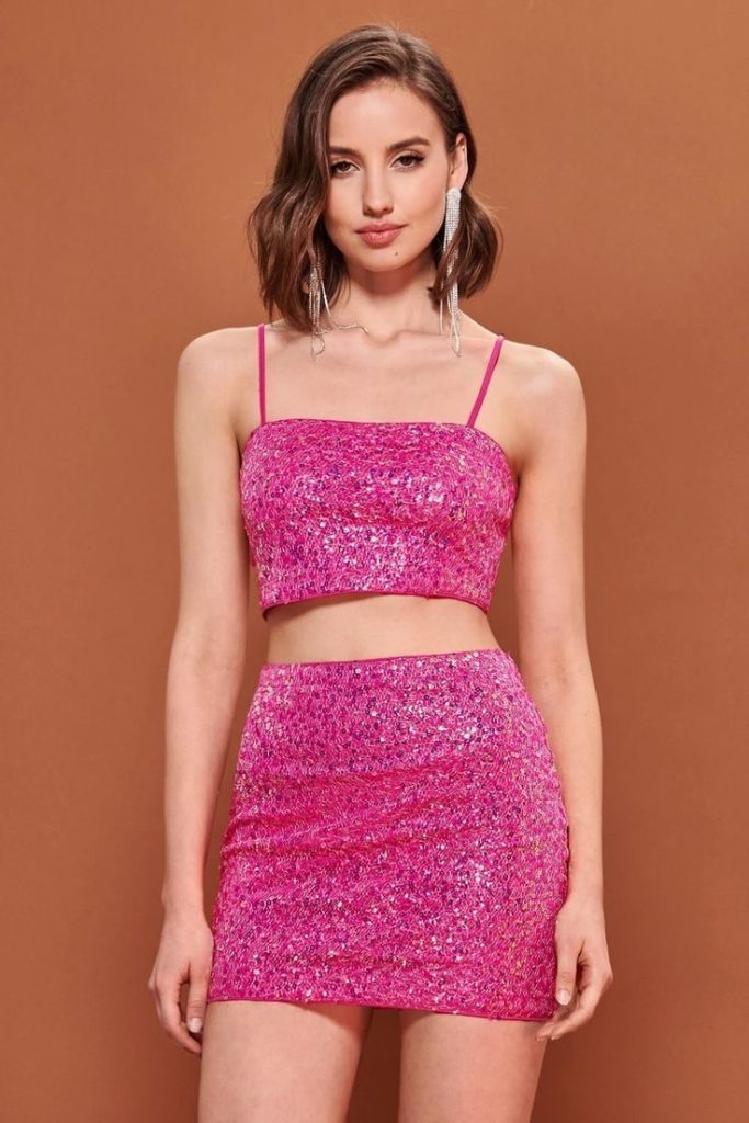 Minimalist design meets Scandi sparkle in this vivacious pink two-piece set. Sequined but subtle, it strikes the perfect balance between glam and wearability. It’s versatile enough for a city brunch or a glitzy evening in Copenhagen or London. Its modern cut allows you to accessorize freely, creating a personal style statement that radiates confidence.