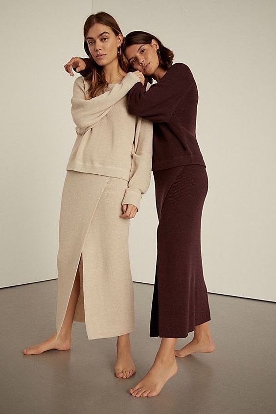 Combining comfort and elegance, this knit sweater and ribbed skirt pairing in soft neutrals is ideal for relaxed weekends or quiet luxury travel. The relaxed silhouettes flatter curvier frames while keeping things sleek and pulled together. This is a perfect example of 2025 spring essentials that prioritize softness, sophistication, and effortless chic.