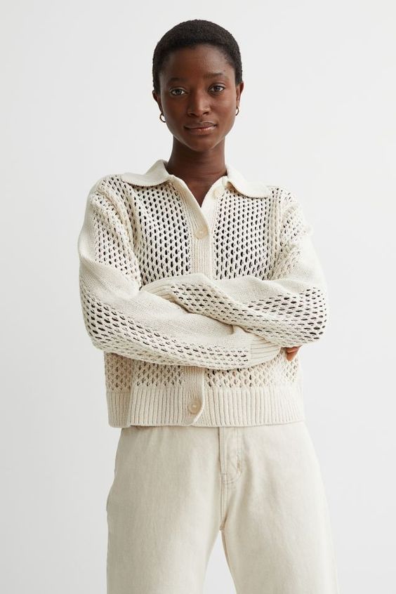 Monochrome continues to dominate spring 2025, with clean, crisp pairings like a ribbed white knit polo top and wide-leg trousers. This look offers a fluid silhouette that flatters midsize and curvy figures alike. The subtle collar detail and gold jewelry accents elevate the outfit from simple to stunning. Ideal for the office or a casual dinner date, this ensemble is the epitome of polished comfort.