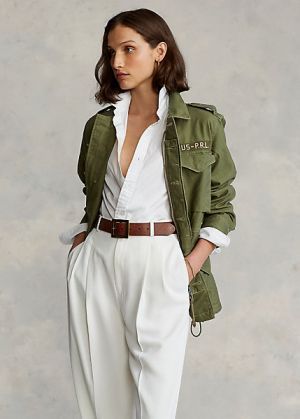 Utilitarian details take a chic turn in this spring-ready look. A crisp white blouse tucked into ivory high-waisted trousers sets the stage, while an olive green jacket adds structure and function. Finished with a classic leather belt, this outfit is perfect for creative offices, spring road trips, or art gallery visits—ideal for women who want comfort with character.