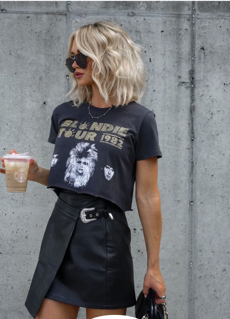 Graphite-toned black mini skirts are making waves with their modern take on everyday fashion. Teamed with a cropped graphic tee, this outfit mixes edgy energy with an approachable vibe. It’s an effortless aesthetic for women seeking playful confidence in a casual look, and it easily transitions from daytime errands to late-night plans.