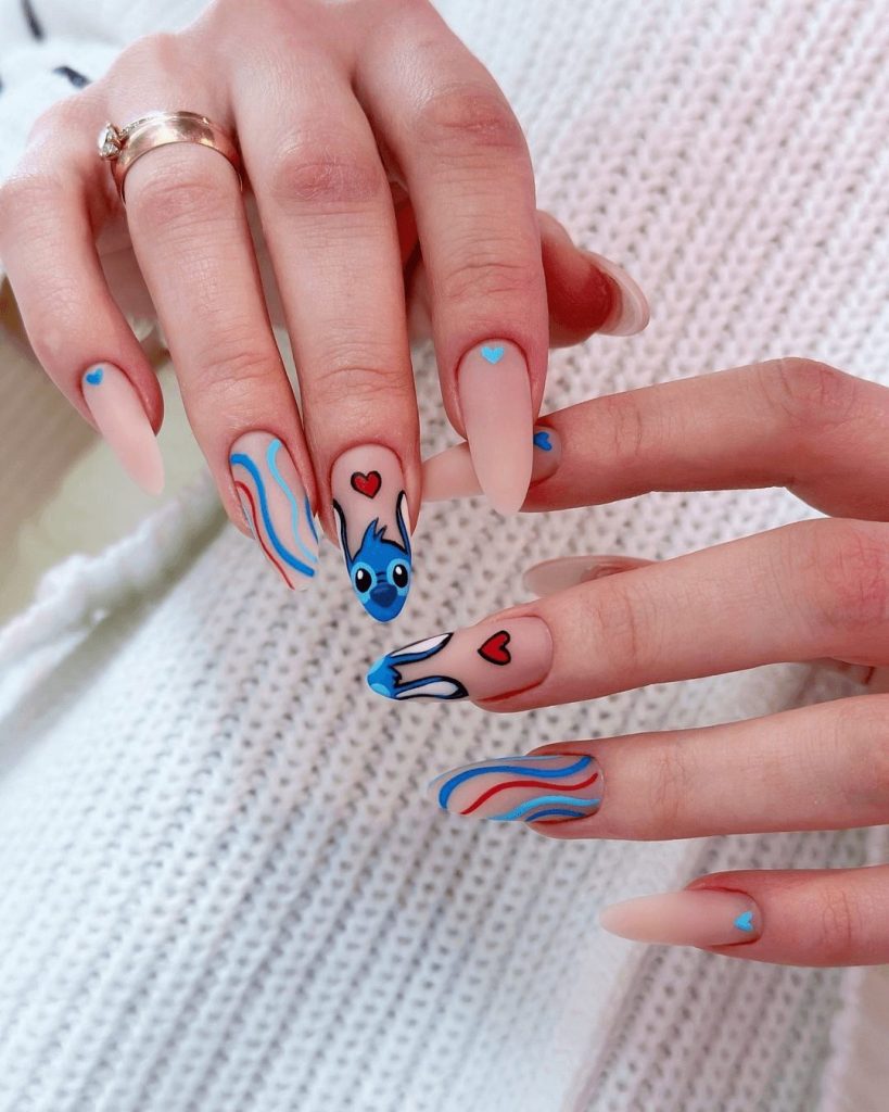 This chic design combines matte nude nails with golden metallic swirls. The contrast creates an elegant effect, like golden waves moving across sand dunes. It’s sleek, sophisticated, and ideal for evenings when you want your manicure to feel like jewelry.