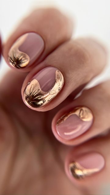 Capture the enchantment of a summer sunset with nails that glow with dreamy elegance. A pastel peach base provides the backdrop for gold-trimmed floral details, creating a miniature gallery on each fingertip. The French-inspired effect is both soft and multidimensional, pairing effortlessly with a bright dress or denim shorts. It’s a romantic, versatile favorite in summer nail colors ideas 2025 for every skin tone.