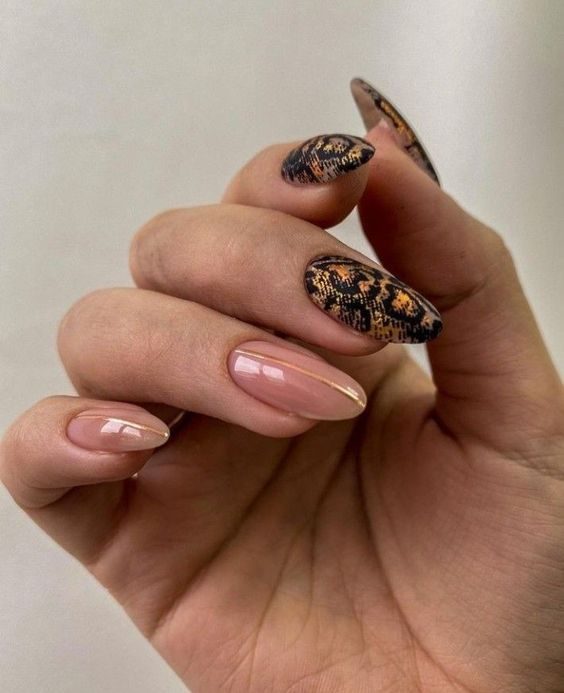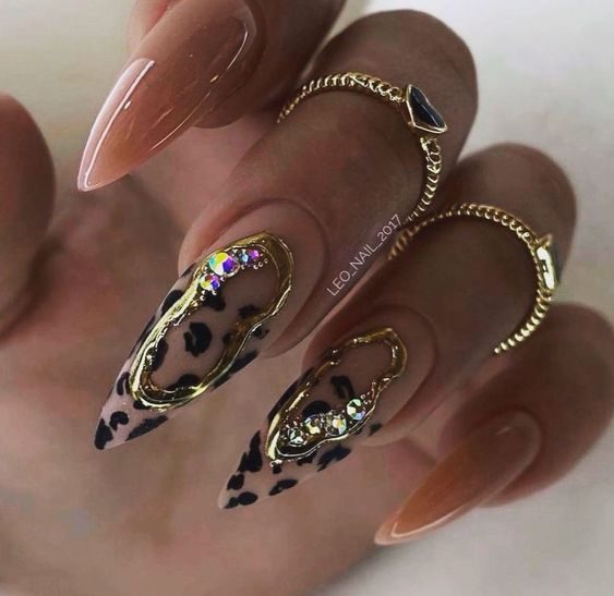 Classic animal print gets a luxe upgrade in this edgy design. A natural base contrasts with bold leopard spots and gold accents, delivering street-style glamour with a polished finish. It’s a fierce yet refined contender in the summer nail colors ideas 2025 lineup for trend-driven fashionistas.