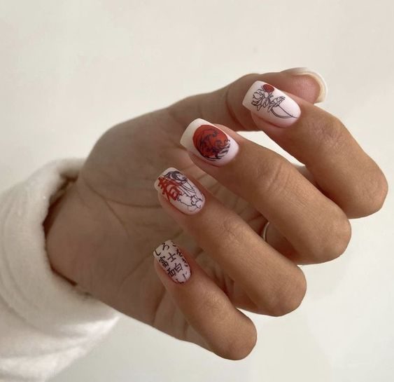 Celebrate your love of stories with a literary-inspired design. Featuring a white base adorned with red text and artistic line drawings, this look is as intelligent as it is fashionable. A minimalist yet eye-catching interpretation of summer nail colors ideas 2025, perfect for book lovers and thoughtful trendsetters alike.