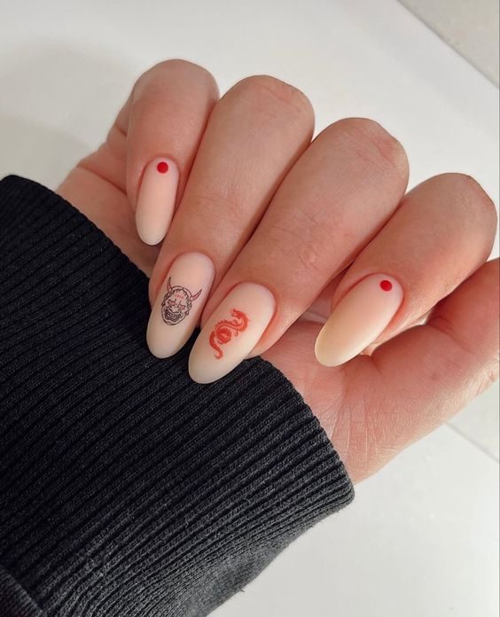 For lovers of minimalist design with an unexpected twist, this nude base features subtle red dots at the cuticles for a playful edge. The short, simple nails provide understated elegance, perfect for casual days or chic events. This style proves that simple natural summer nail colors ideas 2025 can still stand out with personality and grace.