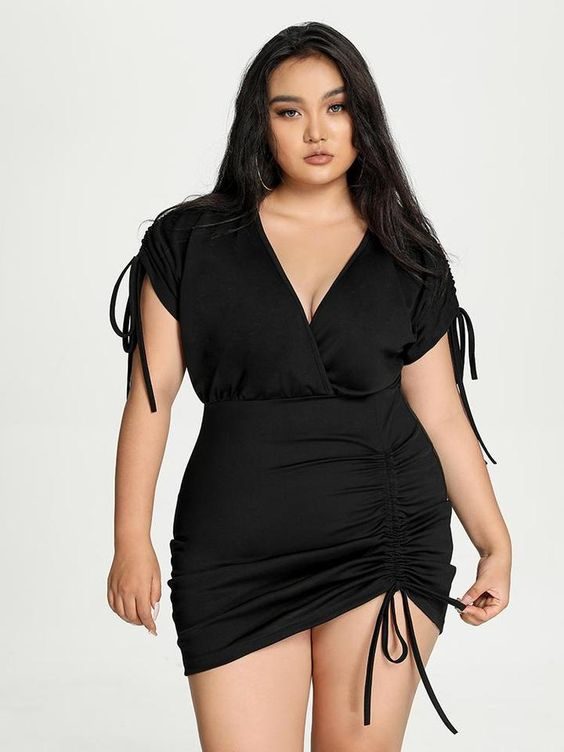 A timeless black dress with adjustable ruching and tie-up sleeves caters to women over 40 who want a modest yet edgy look. The customizable fit flatters different body types and exudes NYC grunge with a polished twist. Ideal for urban outings, dinner dates, or art gallery visits, it offers a sleek silhouette that can be styled up or down.