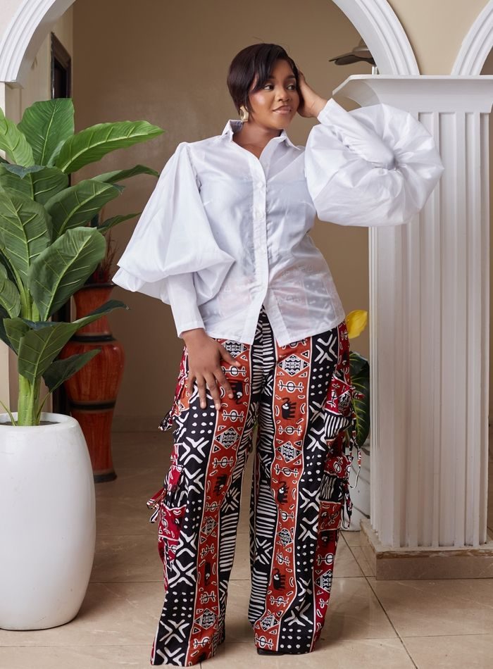 Fuse global inspiration with modern cuts in a pairing of a classic white button-down and patterned wide-leg pants. This look plays with contrasts – structured yet relaxed, edgy yet rooted in tradition. It’s a powerful travel outfit for the woman who values style without sacrificing comfort or cultural flair.