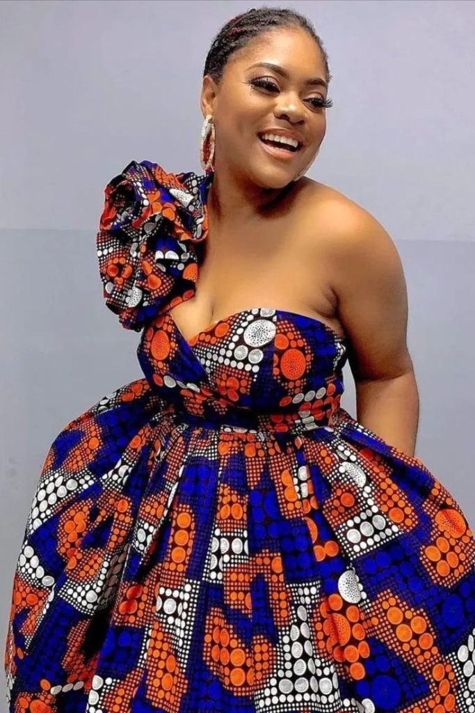 Boho fashion reigns supreme in 2025 with playful volume and fearless patterns. Picture a strapless dress featuring an asymmetrical ruffled neckline, cascading in vibrant shades of orange, blue, and white geometric prints. This piece radiates relaxed charm, ideal for beach outings, poolside brunches, or art festivals. Style it with oversized earrings, bangles, and a colorful headwrap for that effortlessly chic boho aesthetic that’s both expressive and playful.