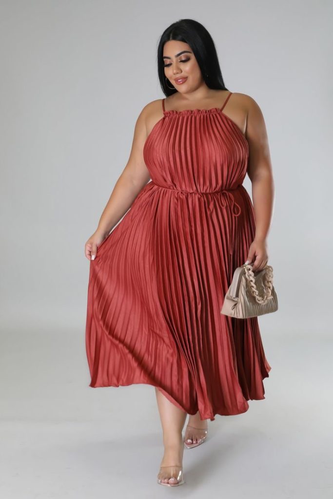 Capture the glow of a warm NYC evening in a pleated terracotta dress that sways with every step. With a gathered neckline and a cinched waist, this design flatters curves while offering a breezy, modest elegance. The terracotta shade echoes the colors of a perfect sunset, and when paired with strappy sandals and a clutch, it channels European charm. It’s a polished, travel-friendly piece that transitions easily from a museum date to rooftop cocktails.