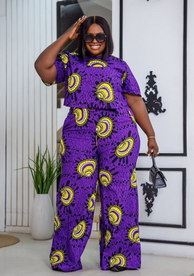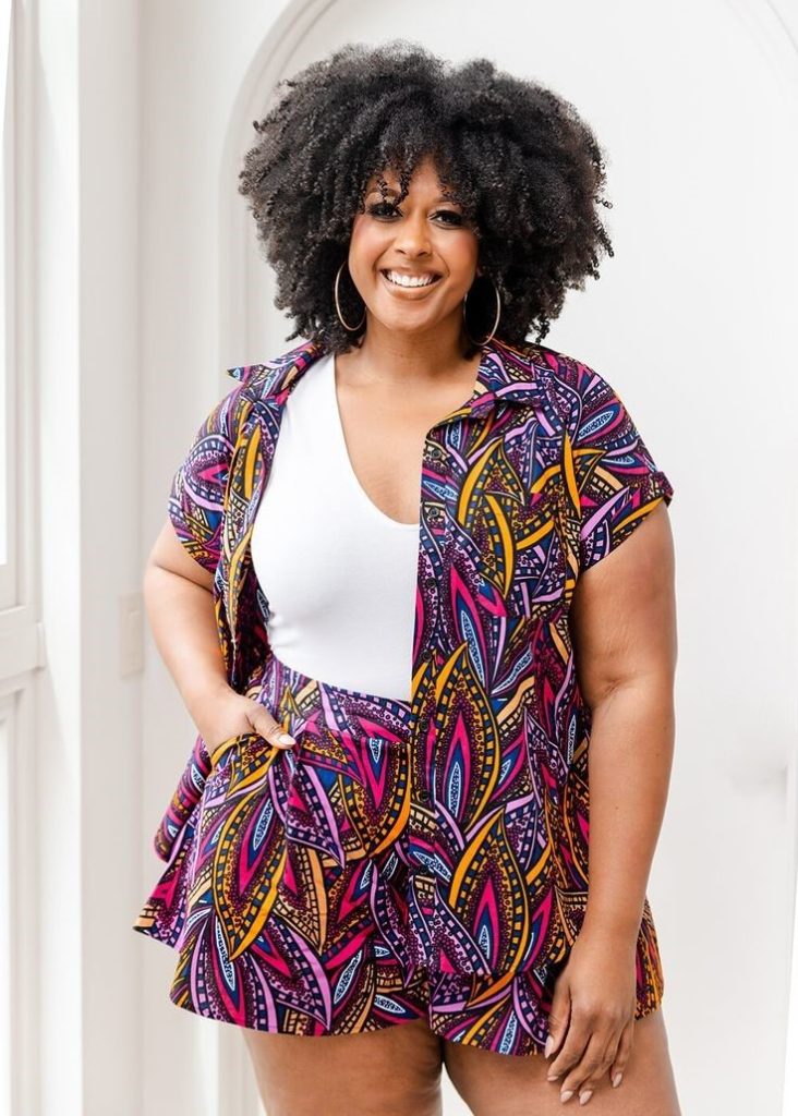Nothing defines summer better than florals, and this purple and yellow two-piece set embraces them boldly. The peek-a-boo cutout and belted waist add definition to the flowy top with puff sleeves, while wide-leg pants create ease of movement. It’s the ultimate capsule wardrobe pick: wear with sneakers or slides for day errands, and swap in heels and bold earrings for an instant night-out transformation.
