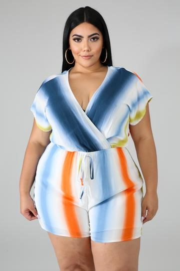 Channel the essence of summer in a watercolor romper with splashes of blue and orange. The wrap-style bodice and drawstring waist ensure all-day comfort, while the pastel palette adds a soft, refreshing look. Ideal for beach vacations, garden parties, or just lounging with style, this romper offers carefree comfort without sacrificing visual appeal.