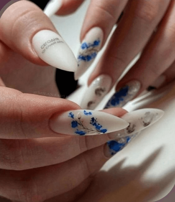 Delicate florals never go out of style — especially for a bride who wants a touch of tradition. Picture almond-shaped nails with tiny painted blooms in white or pastel shades, accented with gold or silver detailing. This style is a sweet nod to vintage romance and works beautifully for spring or garden weddings. It’s also a wonderful way to tie in floral elements from your bouquet or hair accessories.