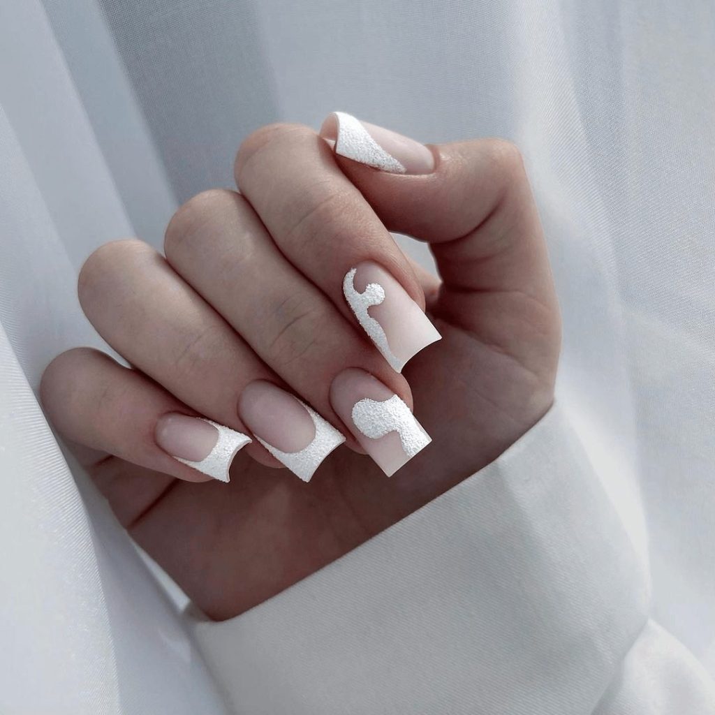 Inspired by the beauty of winter frost but styled for summer, these long square nails feature clear bases with glittery white tips. The gradient effect captures the sparkle of snow while keeping the look light and airy. It’s an enchanting design that feels cool and refreshing even in the summer heat.