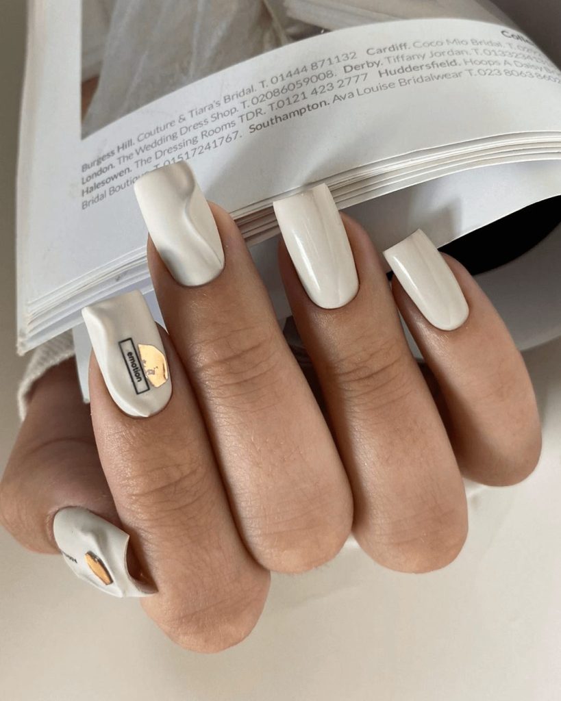 Sometimes the most powerful nail art is also the simplest. This minimalist design features short square white gel nails with sleek black and gold decals, making it versatile enough to pair with any summer outfit. It’s modern, chic, and an excellent choice if you want nails that double as a subtle accessory.