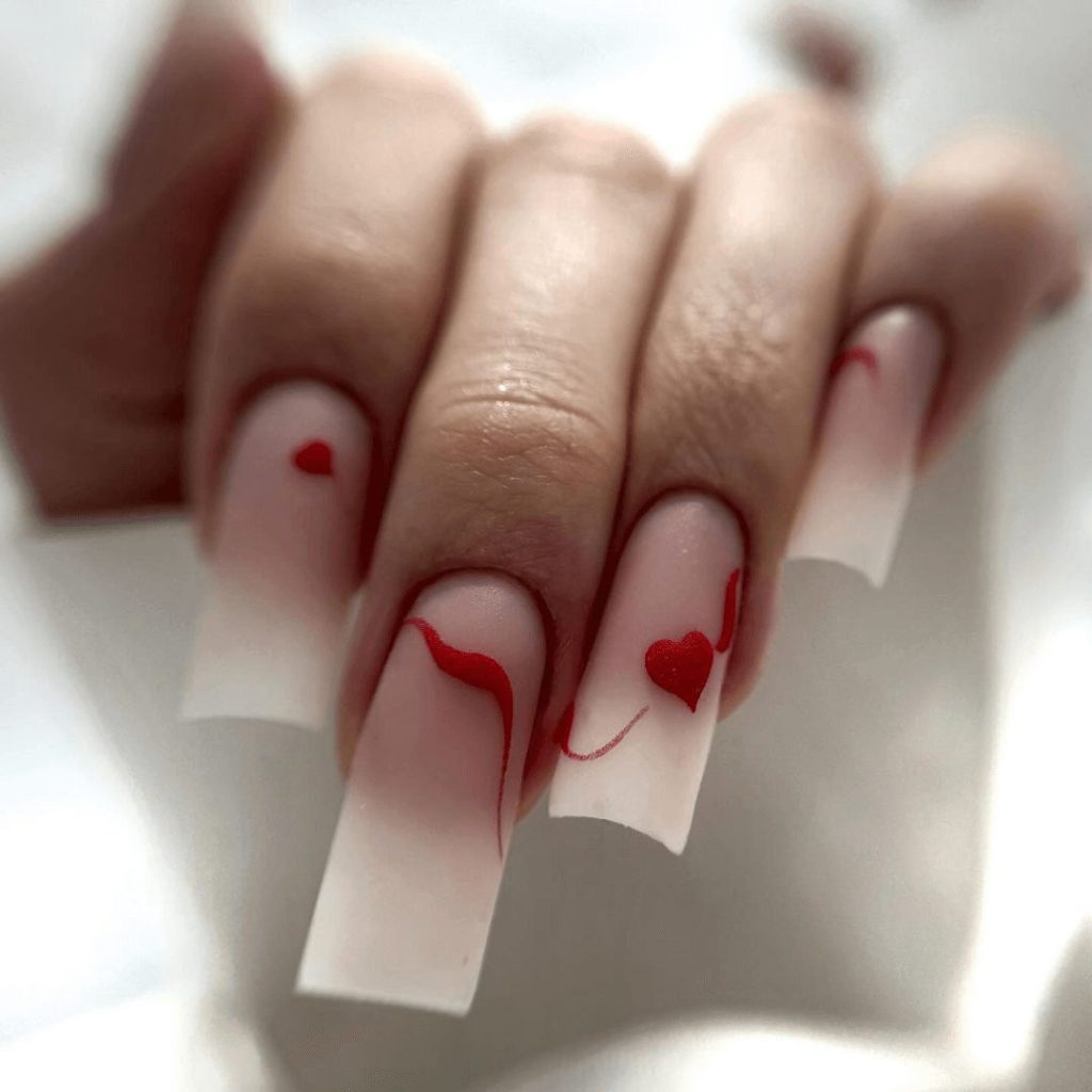 To create this design, apply your sheer pink base and let it cure. Using a fine brush, draw small red hearts on each nail, varying the size and placement for a natural feel. Once satisfied, finish with a gel top coat to preserve the delicate details. This manicure is perfect for date nights or simply celebrating the softer side of summer style.