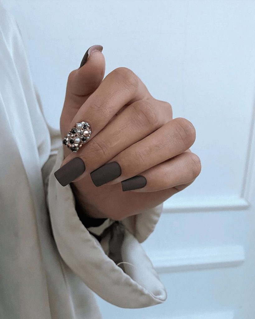This design is also versatile enough to personalize. After applying two coats of matte taupe, you can keep it minimal for a clean, understated look, or add small embellishments like crystals for a touch of glamour. Either way, this muted manicure offers a chic alternative to bolder colors, proving that sophistication doesn’t always need to be loud.
