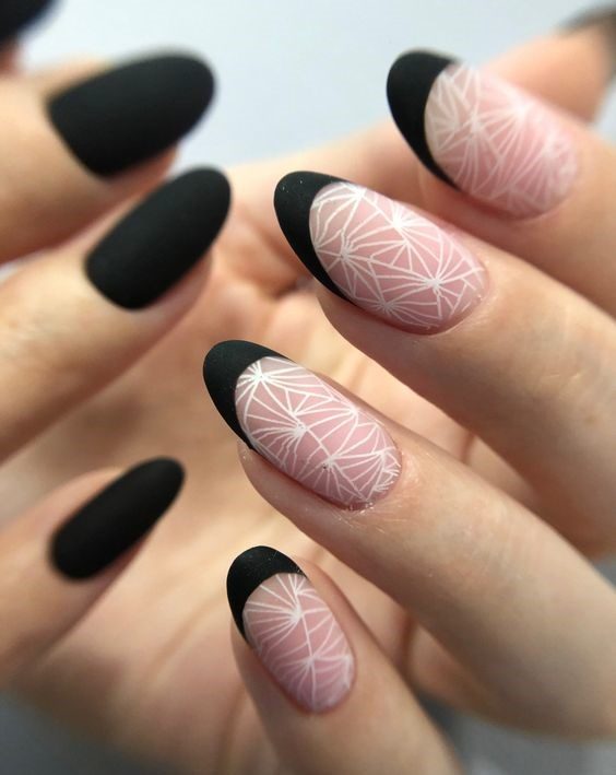 This chic design pairs matte black with blush pink and sharp geometric lines. Cute, bold, and fashion-forward, these nails make a subtle statement with a baddie edge. Great for trend-savvy individuals, they work well with streetwear, minimalist outfits, or bold summer ensembles.