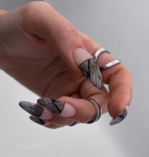 Wild but refined, this long almond nail design features zebra stripes on a nude background. It’s the perfect mix of playful and chic, delivering a trendy and aesthetic finish. Ideal with both monochrome and neon outfits, this nail art adds personality to even the simplest wardrobe pieces.