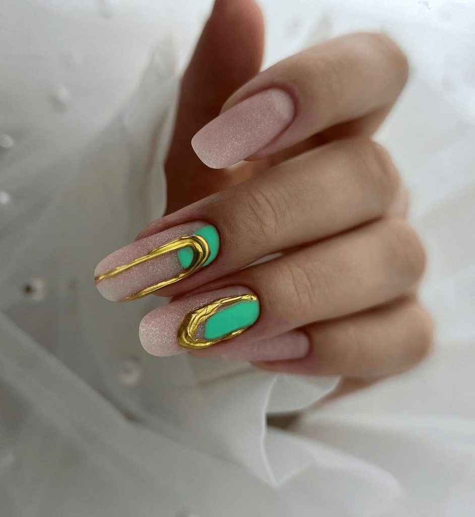 Absolutely. Many of these designs—especially turquoise and gold, nude with flakes, and subtle gradients—look stunning on toenails, creating a cohesive look from fingers to toes.