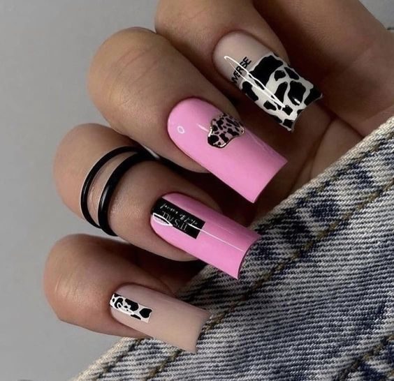 Abstract acrylic nails are taking center stage with squiggly black lines over pastel pink bases. With added paw prints and playful messages, these medium-length nails are a creative dream for the contemporary woman. They’re fun, cute, and stylish—combining art with everyday wearability in a way that feels personal and totally Instagram-worthy.