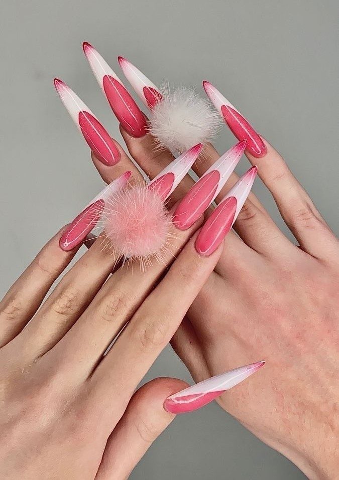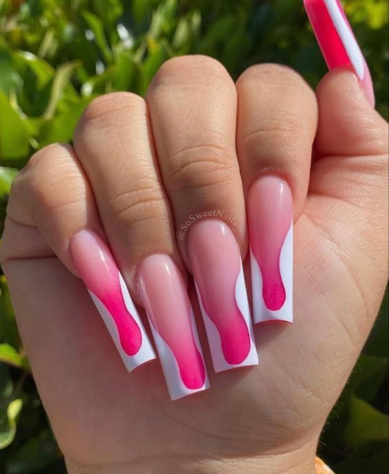 These nails combine rich dark pink tips with structured white and natural bases for a look that’s both elegant and edgy. Perfectly suited for professional settings or upscale events, this design is Barbie-chic meets modern executive—bold yet undeniably refined.